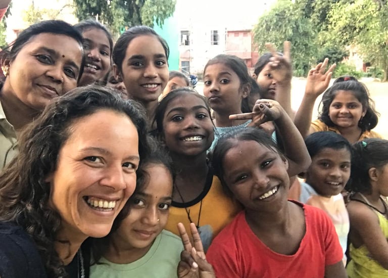 Em fevereiro, toda a equipe da Vikas Bloom viajará para India. Juntas, com um abrigo feminino, construiremos um Salão de Beleza que funcionará como um Centro Vocacional — um espaço para treinamento de habilidades, empoderamento e independência econômica.